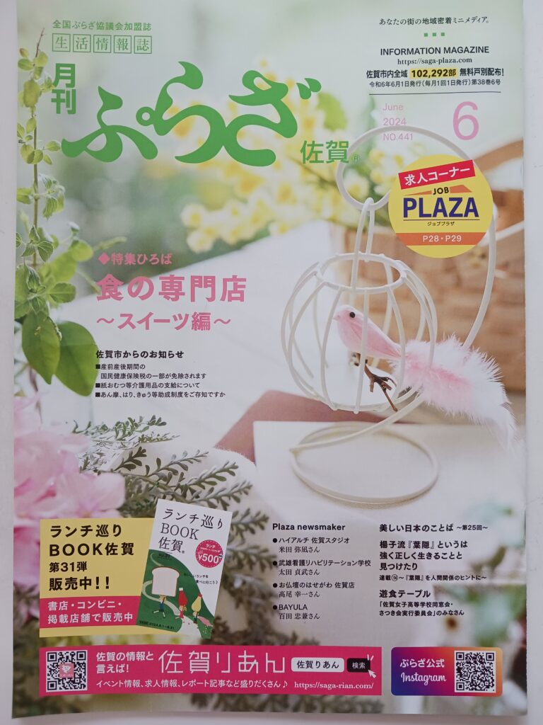 月刊ぷらざ佐賀 6月号に掲載して頂きました。